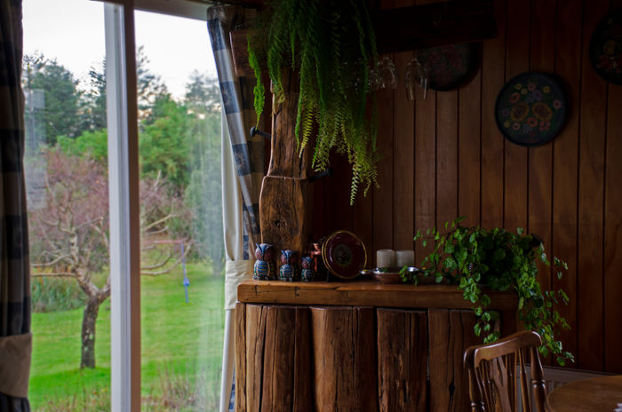 Primer piso: Hall de acceso con chiflonera, living, comedor, cocina con comedor de diario, loggia, patio techado con caldera a leña, 3 dormitorios y un baño.